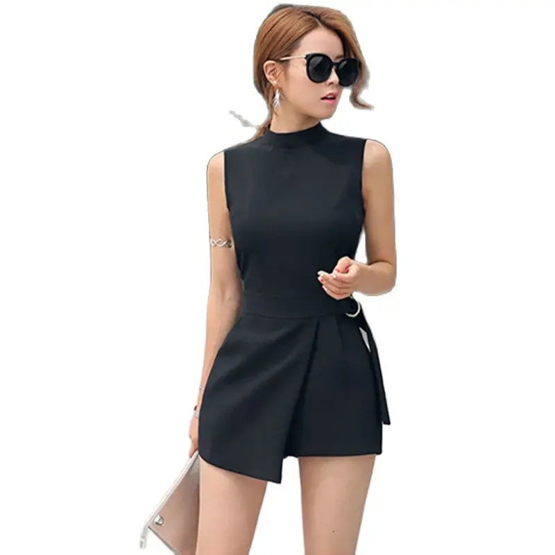 Free shipping 2021 Summer Plus Size Solid Playsuit Women Black Sleeveless Casual Office Playsuits Shorts Vintage Elegant Asymmetrical Jumpsuit