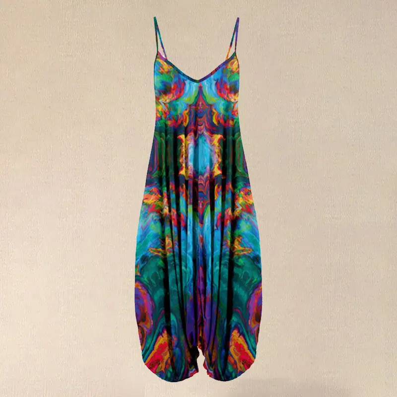 2021 Women Teal & Orange Paisley Racerback Harem Jumpsuit Spaghetti Fashion Vintage Overall Straps Long Jumpsuit Trousers original Price($) 19.99 salePrice($) 19.99