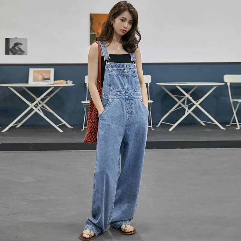 Korean Japan style straight loose wide section denim overalls school Hip Hop Streetwear casual cute slim women wide leg pants original Price($) 47.68 salePrice($) 28.61